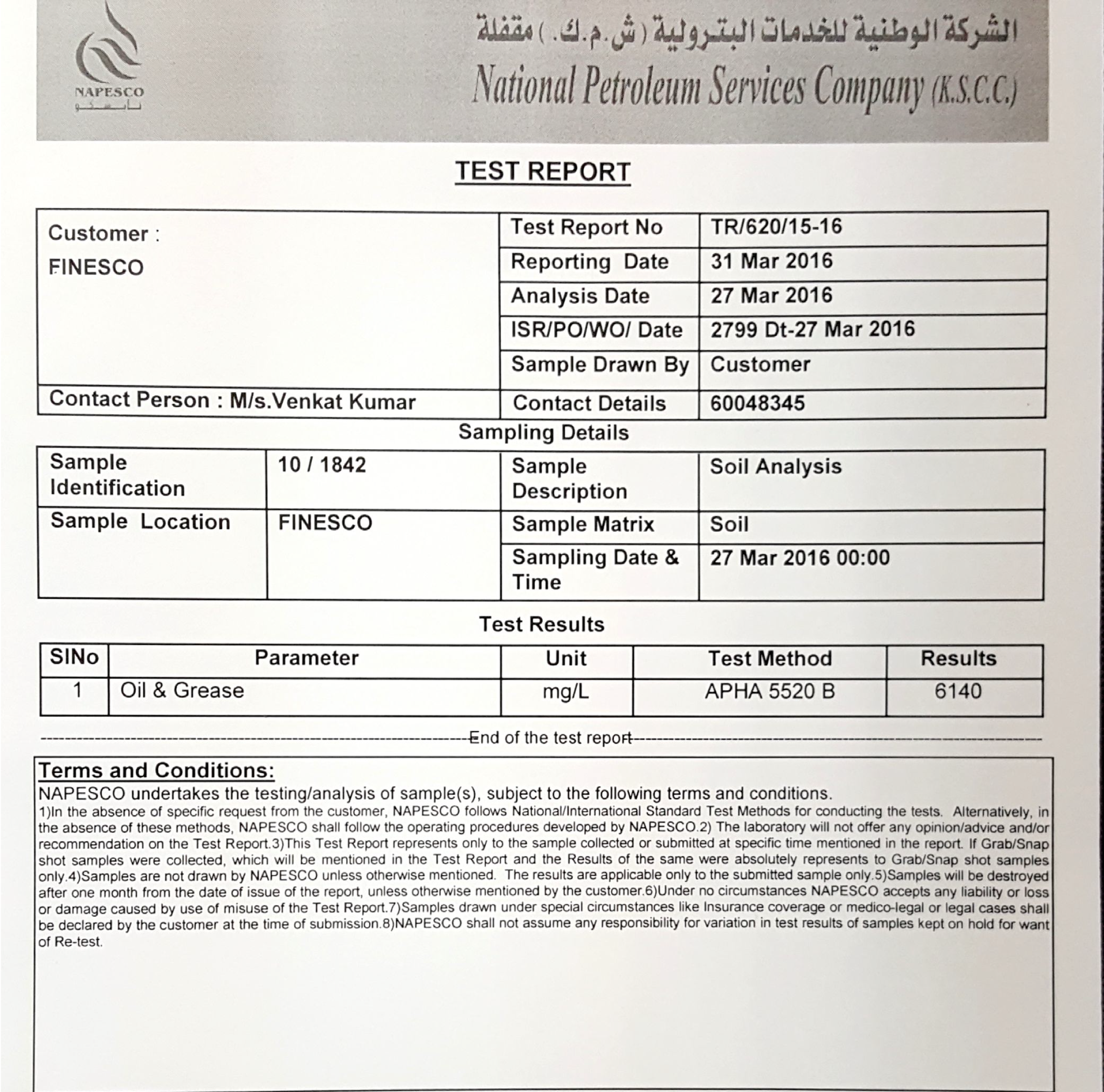 KUWAIT - Tested and recommended as most effective on crude oil by “NATIONAL PETROLEUM SERVICES COMPANY(KSCC).
