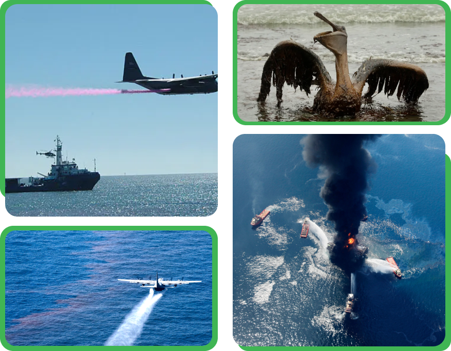 It reduces the surface tension between the oil and the water, literally pulling the oil apart, allowing the oil to be dispersed into minute droplets (similar to the size of dust) in the water column. These droplets remain suspended below the surface, unable to resurface and coalesce into a slick. This accelerates the natural process of bacterial degradation, and dispersion, thus assisting the biodegradation of the oil in the environment
